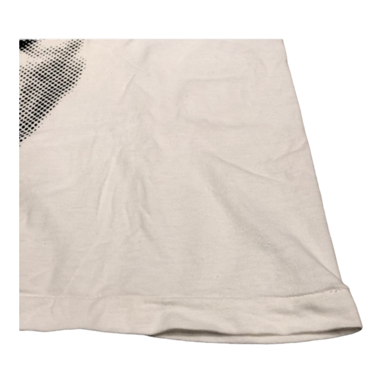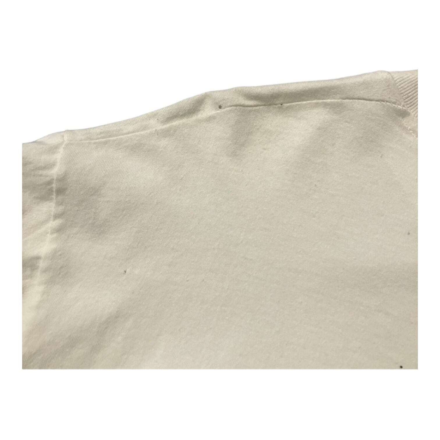 全体的にヨレ・ムラ・褪色・汚れ・タグ欠損・プリントの掠れ・左肩前と後付近・背中にピンホールがございます。