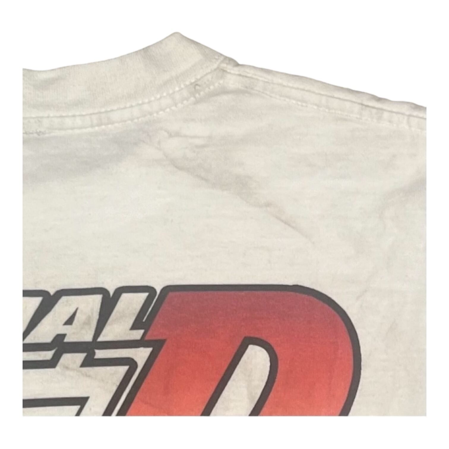 全体的にヨレ・褪色・傷・薄汚れ・プリントの掠れ・タグ欠損・背面肩付近に汚れがございます。