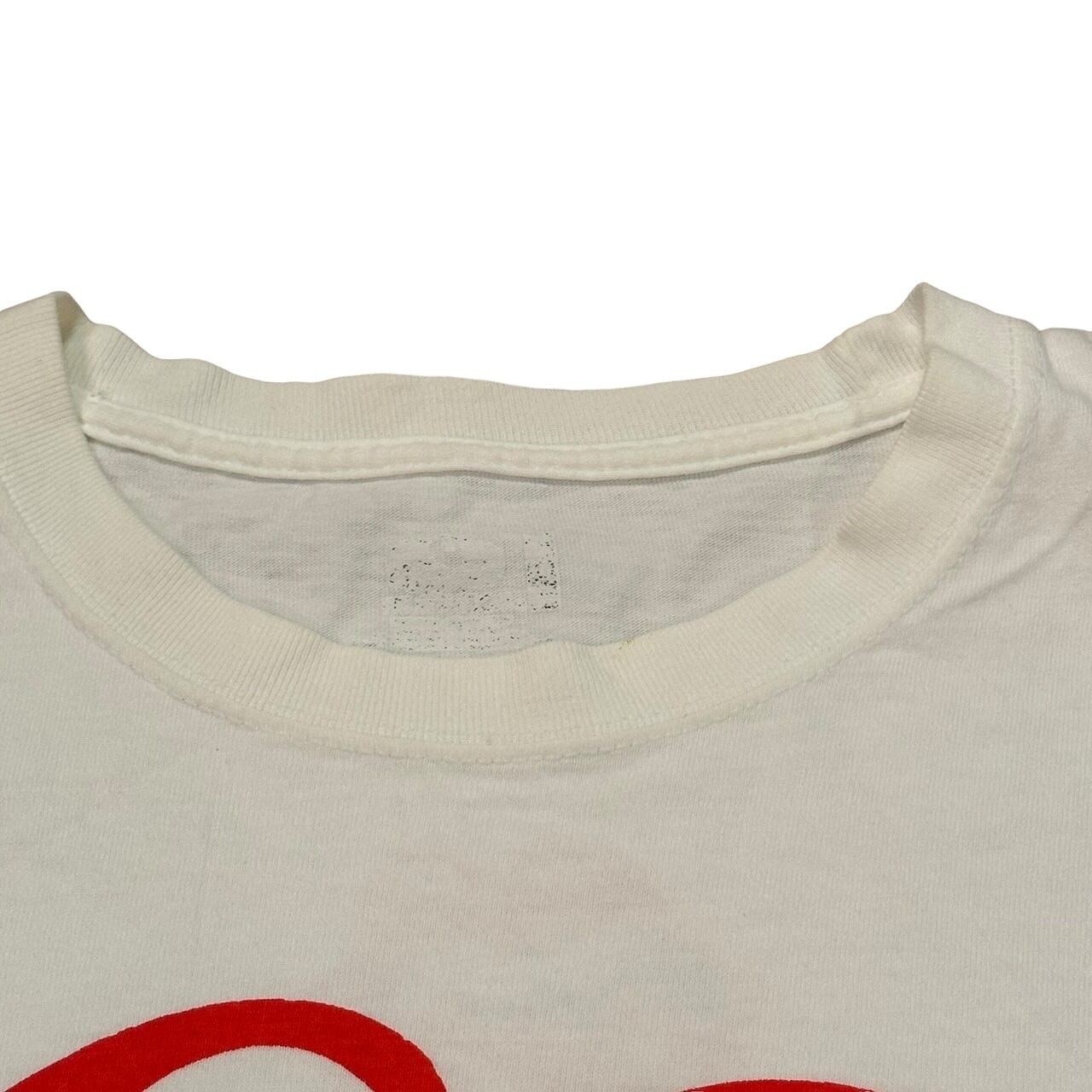 全体的にヨレ・褪色・汚れ(特に正面プリント横、両袖、背中裾部分)・解れ・プリントの掠れ・サイズタグの欠損がございます。